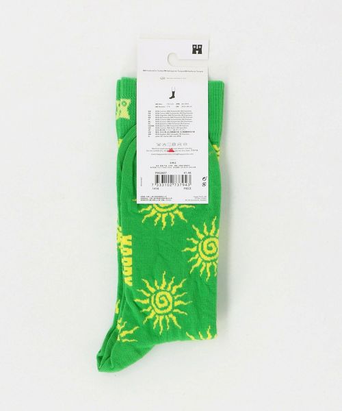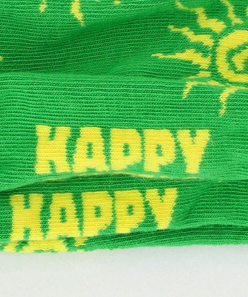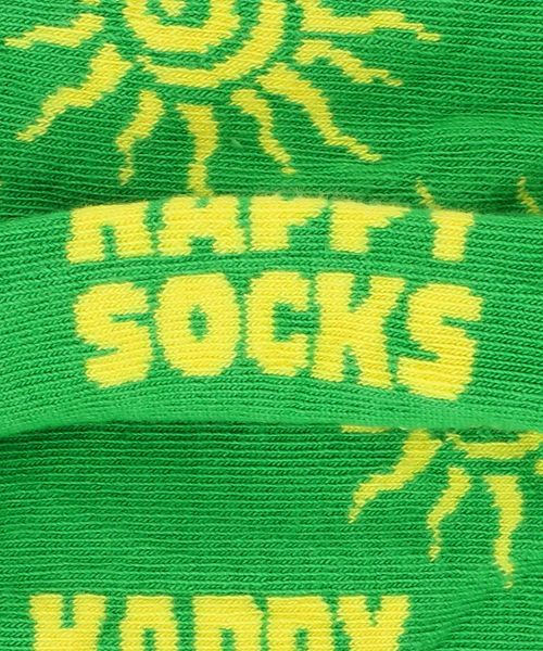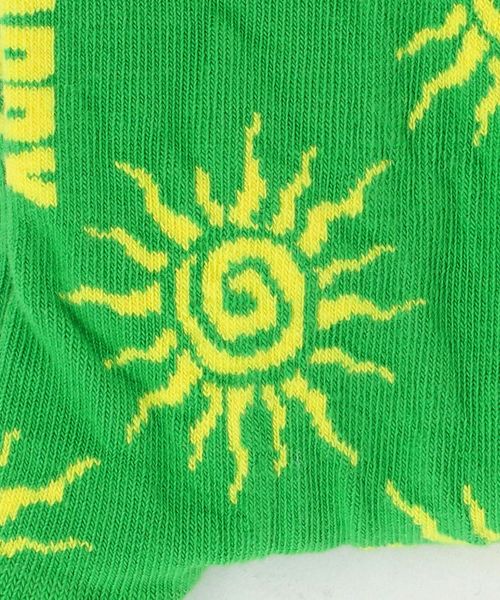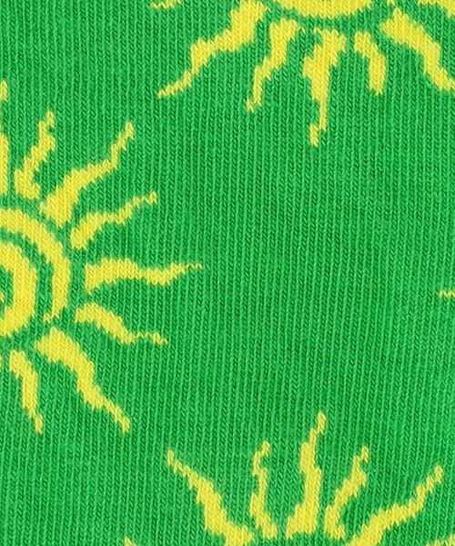 鮮やかなライムグリーンをベースに、太陽のイラストがデザインされたソックスです。