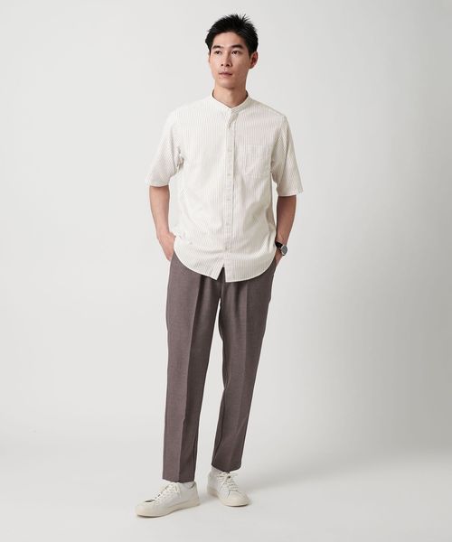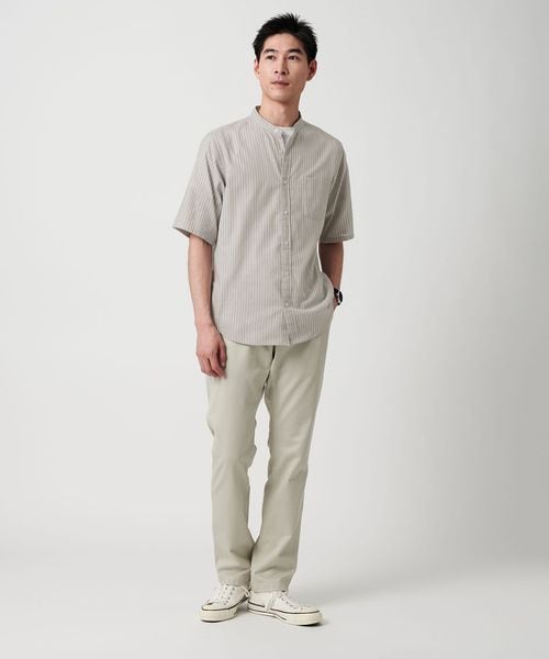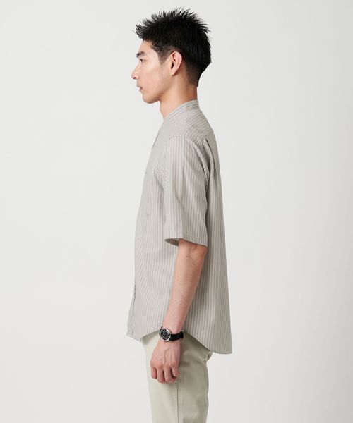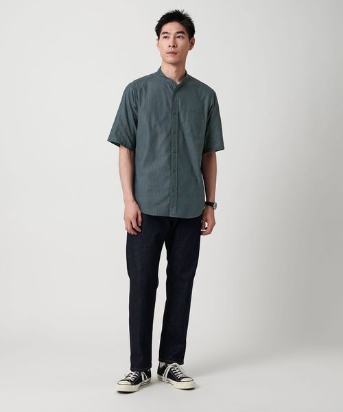 バンドカラーデザインで、一枚着としてもさまになり、インナー使いもしやすいアイテム。