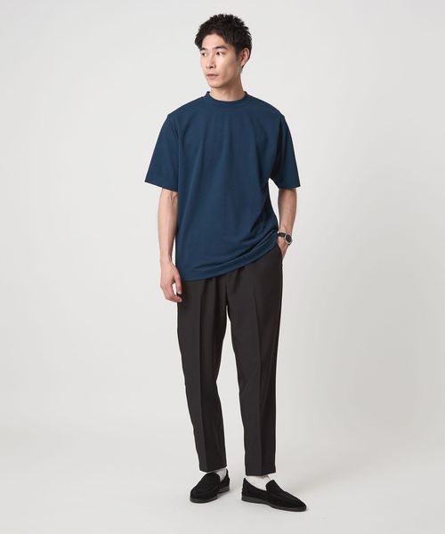 ビジネスでは、テーパードパンツやイージースラックスに、ローファーなどのレザーシューズでまとめると品のあるスタイリングに仕上がります。