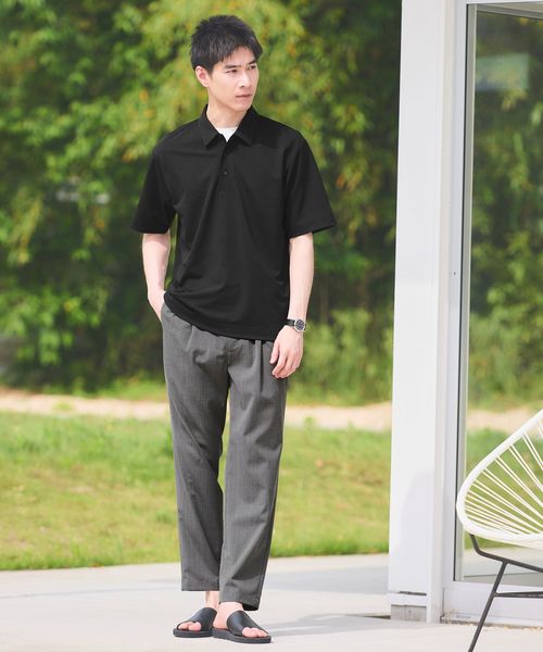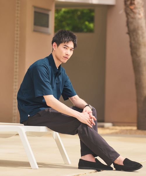 台襟のないリラックスした雰囲気と、共地の襟で見栄えのよいディテールを併せ持った半袖ポロシャツです。