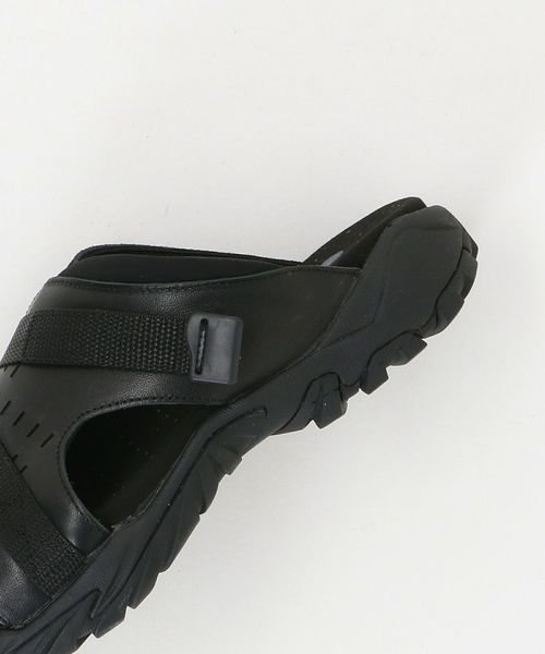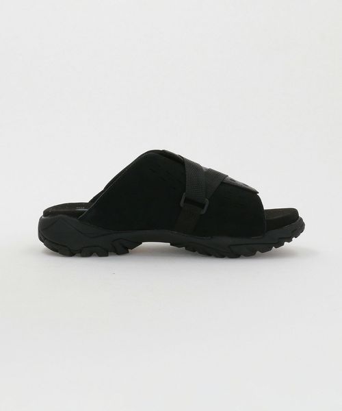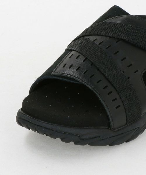 スムースレザーの外羽根パーツと、スエードの内羽根パーツのコンビネーション仕様のサンダル。