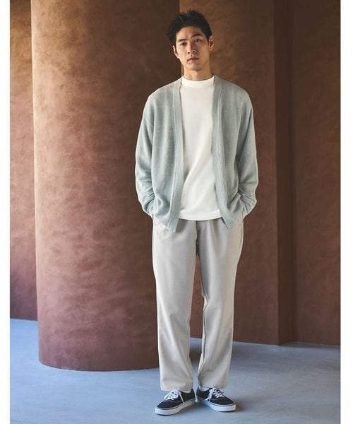 シンプルなデザインなので合わせるアイテムによって、印象をガラッと変えていただける汎用性の高い一着。