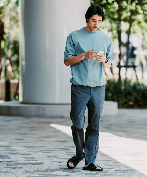 タック入りのイージーパンツを合わせるとキレイめカジュアルな装いに仕上がります。