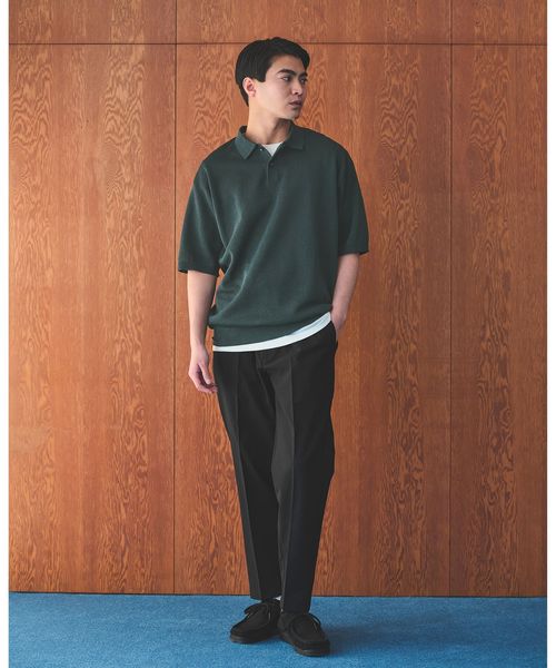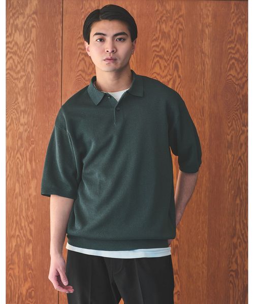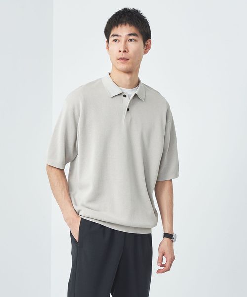 ペーパー素材をブレンドした春夏らしい涼しげな雰囲気のニットポロシャツ。
