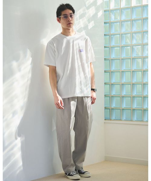 ゆったりとしたシルエットのパンツと合わせたカジュアルなコーディネートがおすすめ。