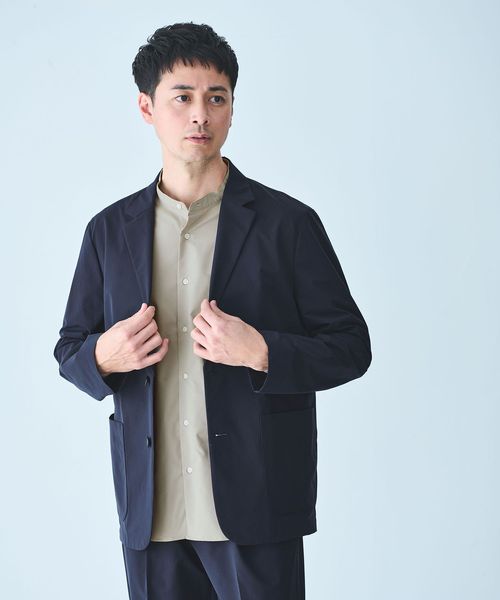 ストレッチ性があり、ドライなタッチの生地感が特徴。