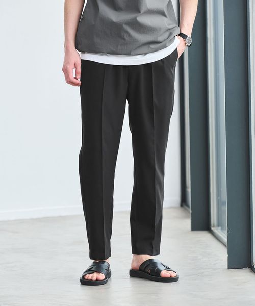 リラックスしたウエストのイージー仕様と、クリース入りデザインが絶妙なバランスです。