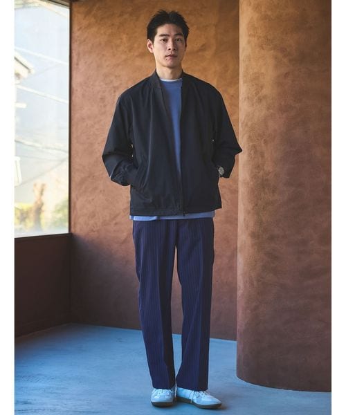 グリーンレーベル リラクシングで春夏定番の生地を使用し、腰回りはすっきりとさせ、足元はゆったりとさせたストライプ柄のストレートパンツです。