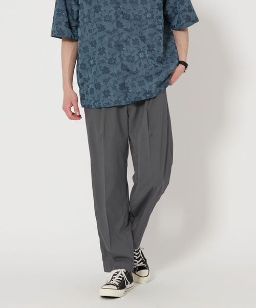 定番のディテールは残しながら、ワンプリーツを入れてワイドめなシルエットにアップデートしました。