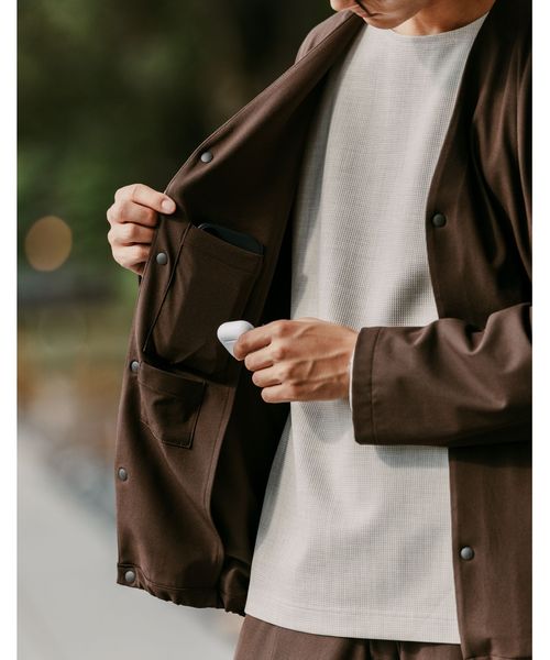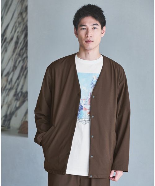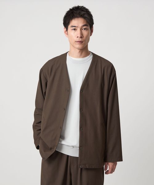 気軽に羽織れるスポーティーな雰囲気のノーカラーカーディガンです。