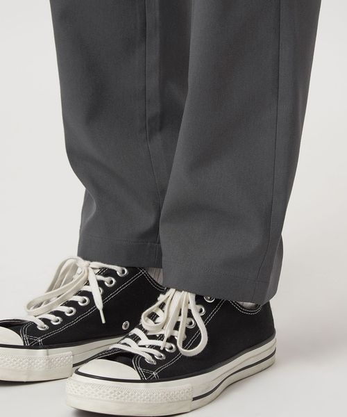 すっきりとしたナローシルエットのパンツ。