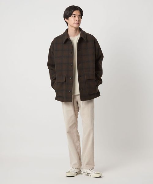 スウェットやニットの上から羽織ってワイドパンツを合わせたスタイリングがおすすめです。