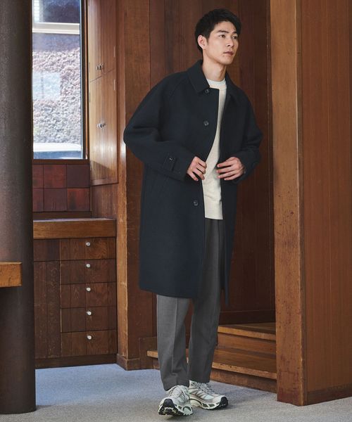ゆったりとしたシルエットのステンカラーコート。