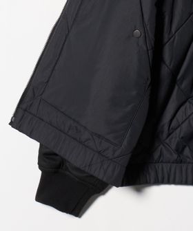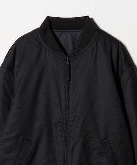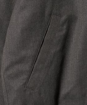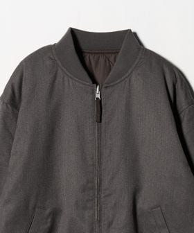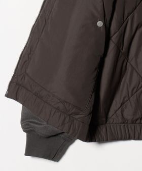 上品な表情が特徴的な梳毛調の生地とカジュアルな雰囲気のナイロンタフタのキルティング生地の2面で楽しめる中わた入りブルゾン。