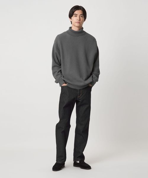 コットン素材で気軽に着用できる、ベーシックな畦編みタートルネック