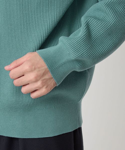 コットン素材を使用した畦編みのニット。
