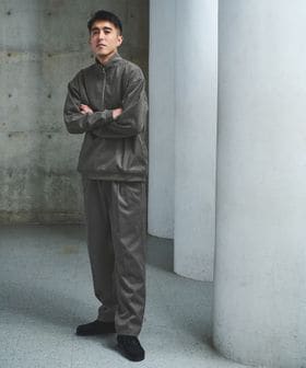 同シリーズのジャケットやトップスを合わせた、セットアップスタイルも素敵です。