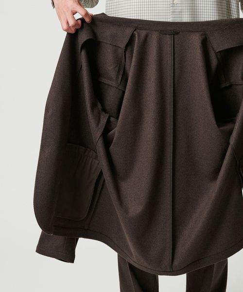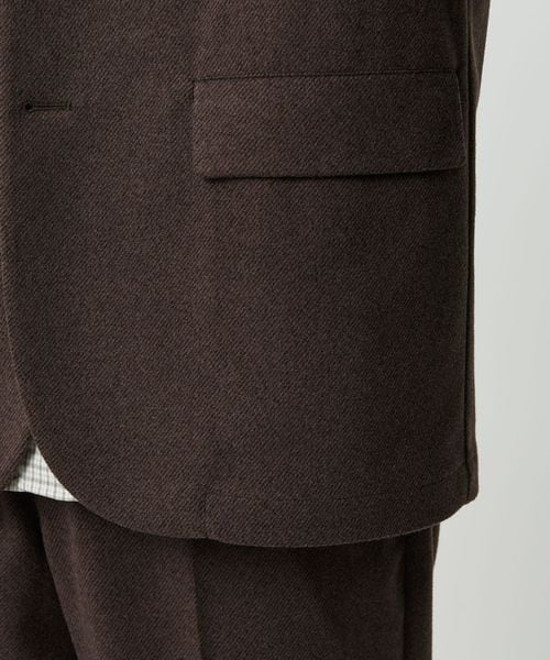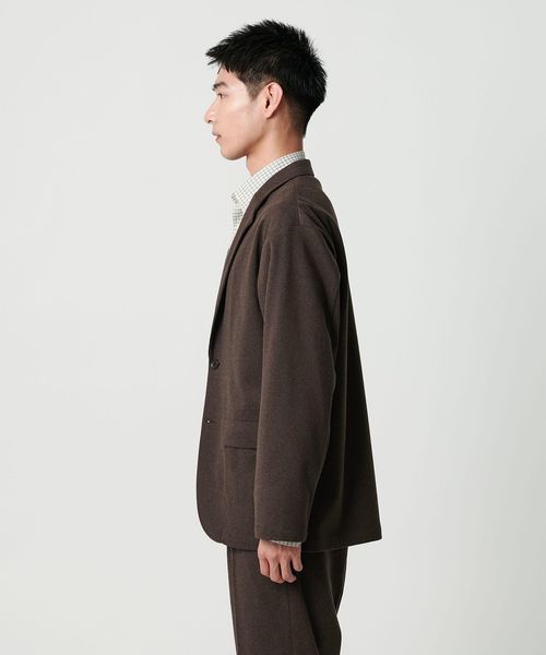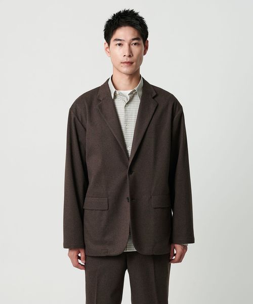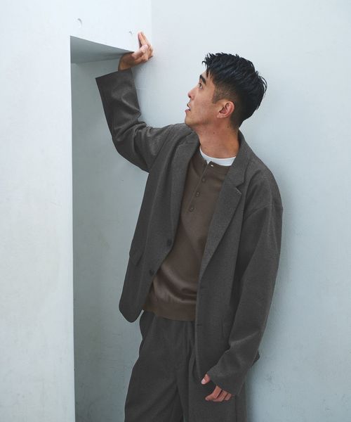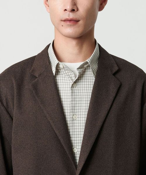 ゆとりのあるシルエットで肩の位置を落としたカジュアルジャケット。
