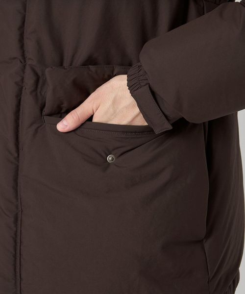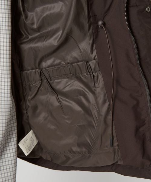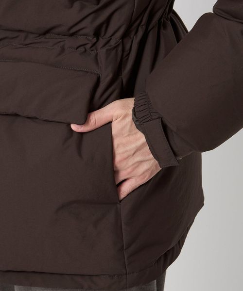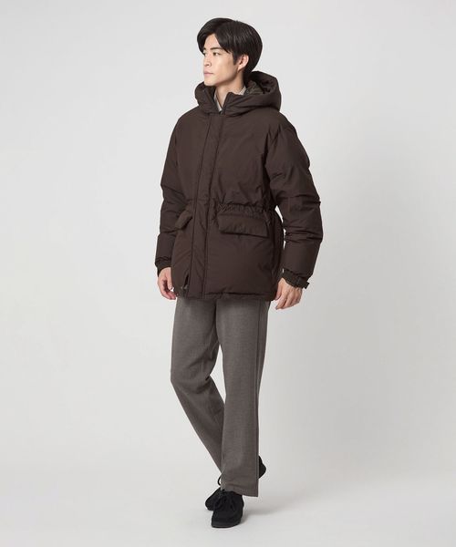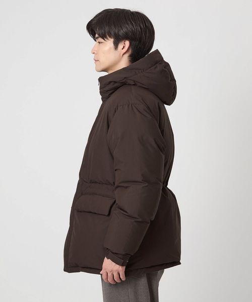 第一織物のDICROSを使用したフード付きダウンブルゾン
