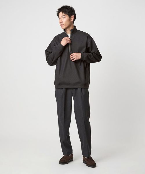 1枚着で着用する際はジップを少し下げてインナーのカットソーを覗かせた装いもいい感じ。