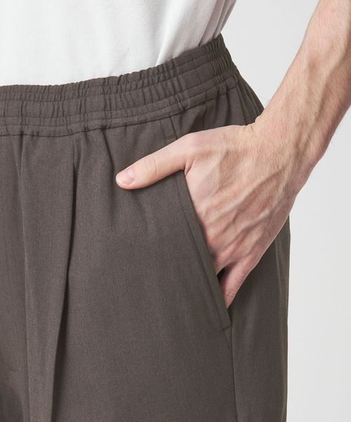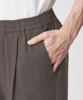 ワンタック入りのリラックスしたウエストイージー仕様ながら、クリース入りデザインや前開きファスナーが絶妙なバランスが特徴。