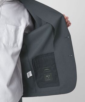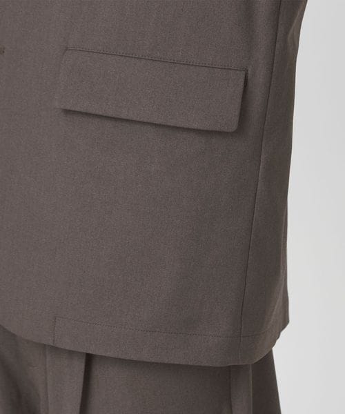 シングル2つボタン仕様でフロントにフラップポケットを配置したシンプルなディテール。