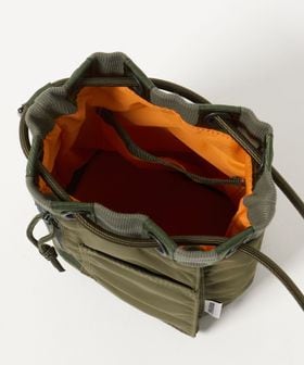 外出に必要な貴重品をさっと持ち運ぶのに便利なコンパクトサイズの巾着バッグ。
