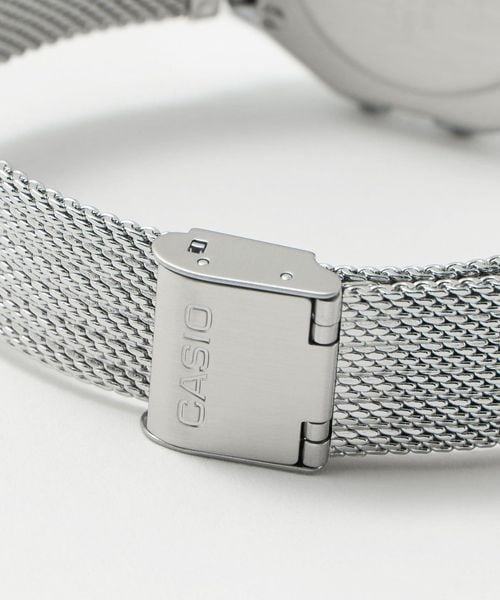 使い勝手の良さで根強い人気を誇るデジタルウオッチA158を、メッシュバンド仕様に仕立てたスタイリッシュなウオッチ。