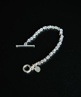 シンプルながらも、一工夫加えた独特なチェーンデザインのブレスレットです。