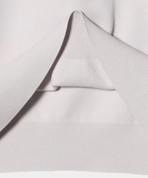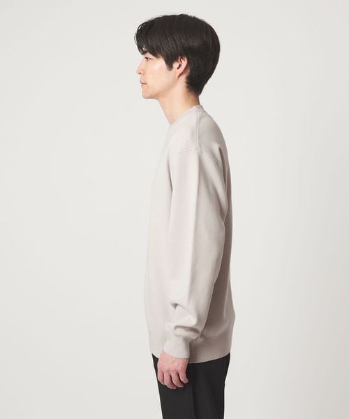 ややゆとりのあるサイジングでリラックス感がありつつも、ネックデザインやしっかりとしたリブなどの細かいディテールがスマートな印象を与えます。