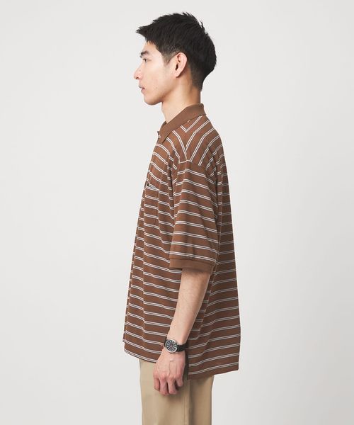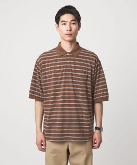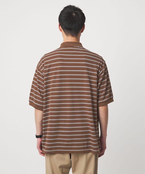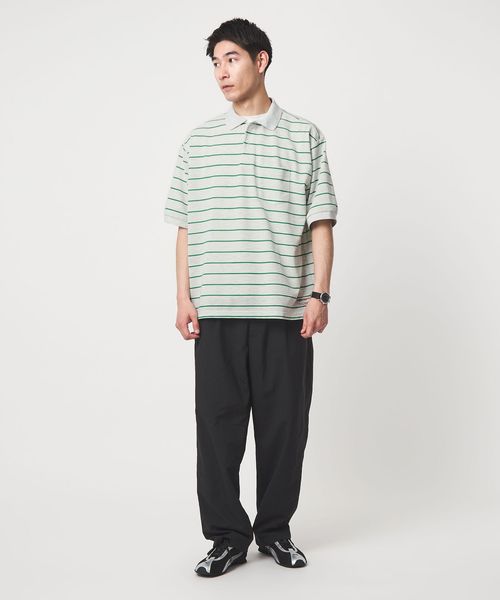 特殊な異形断面ポリエステル糸を使用し、鹿の子をボーダーで編み上げたオリジナル素材はマットでナチュラルな見た目とコットンのようなドライなタッチが特徴。