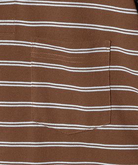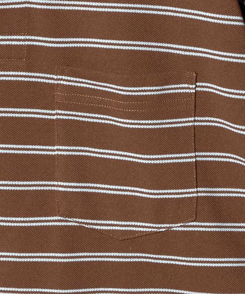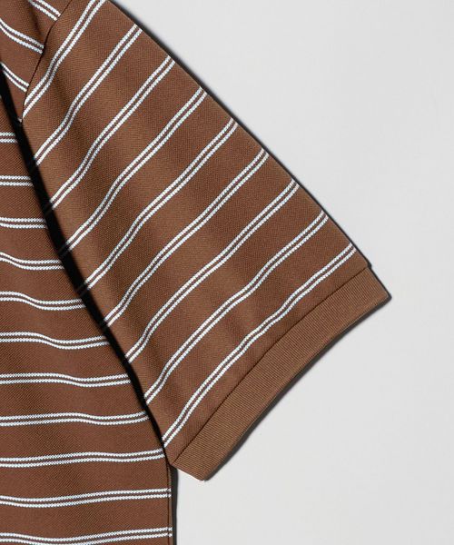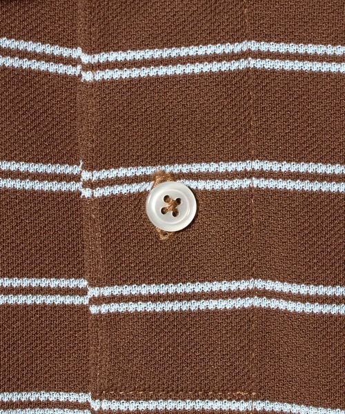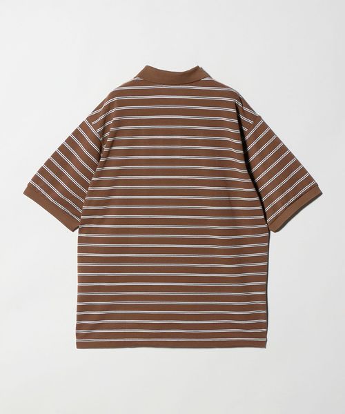 特殊な異形断面ポリエステル糸を使用し、鹿の子をボーダーで編み上げたオリジナル素材はマットでナチュラルな見た目とコットンのようなドライなタッチが特徴。