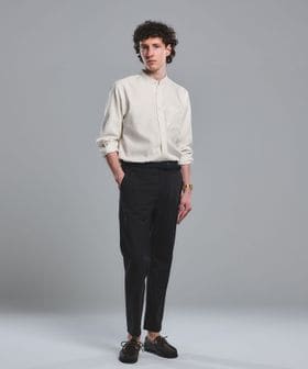 イージースラックスやテーパードパンツのキレイメ合わせや、セットアップのインナーにおすすめです。