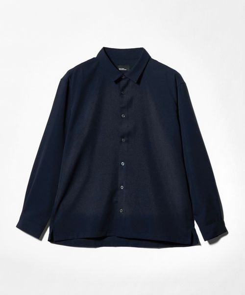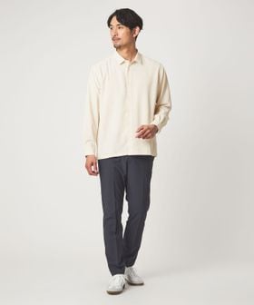 適度にゆとりを持たせたドロップショルダーデザインの長袖シャツ。