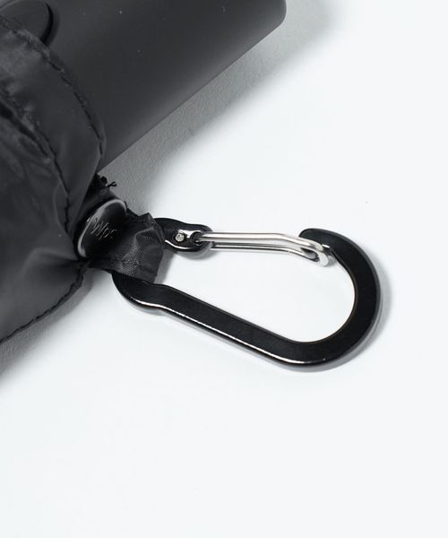 さらにカラビナ付きなので、濡れた傘をバッグの外に掛けての持ち運びが可能です。