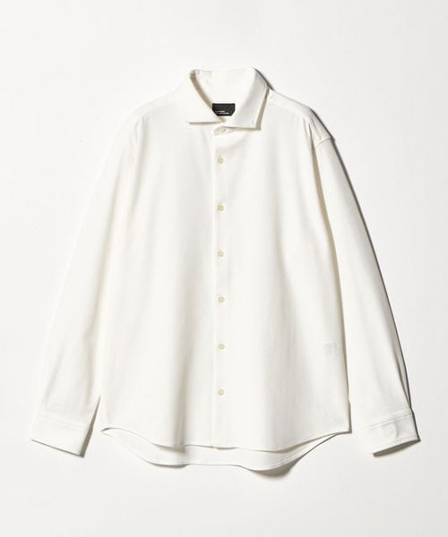 首元をすっきりと見せるカッタウェイカラーが特徴のシャツです。
