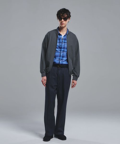 MD.GRAYカラーとNAVYカラーは、共生地の同素材ジャケットと合わせたセットアップスタイルも可能です。
