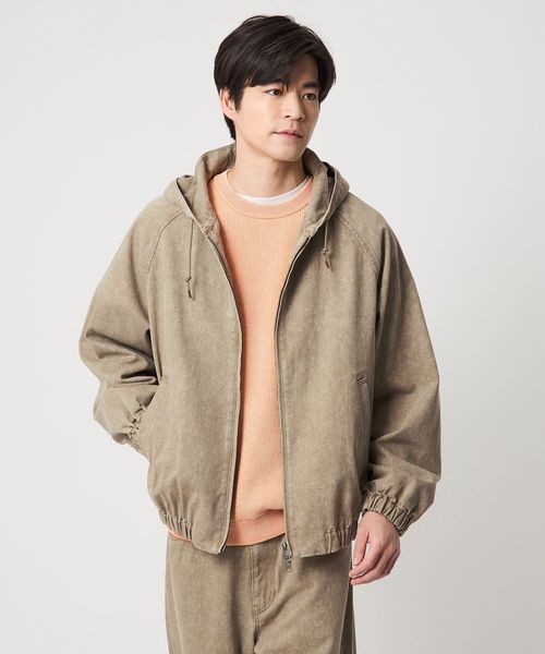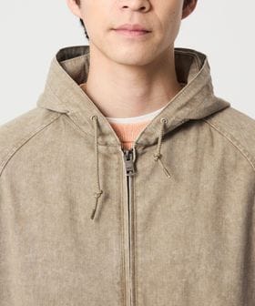 生地感とシルエットにトレンドを加えたフーデッドブルゾン