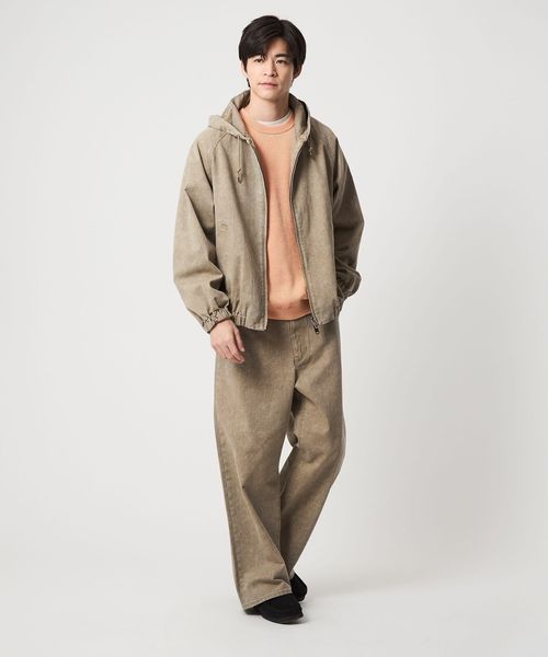 同素材を使用したバギーパンツと合わせれば、カジュアルなセットアップスタイルが完成。