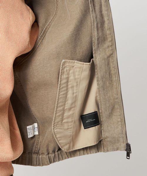 袖と裾はリブ仕様を採用し、着丈はやや短めに設定することで立体感のシルエットに。