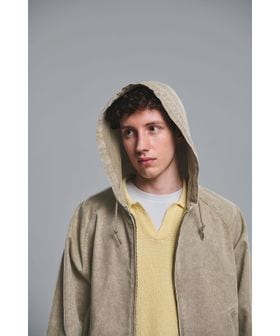 生地感とシルエットにトレンドを加えたフーデッドブルゾン
