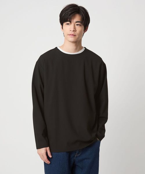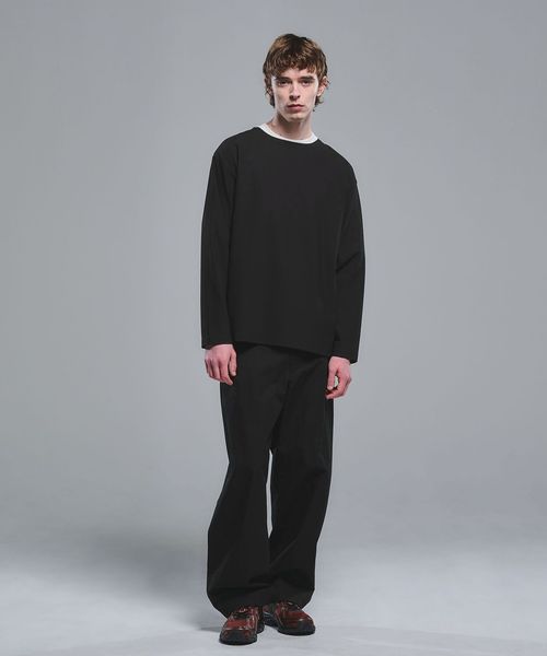 ノーカラーネックですっきりとした首周りの長袖Tシャツです。