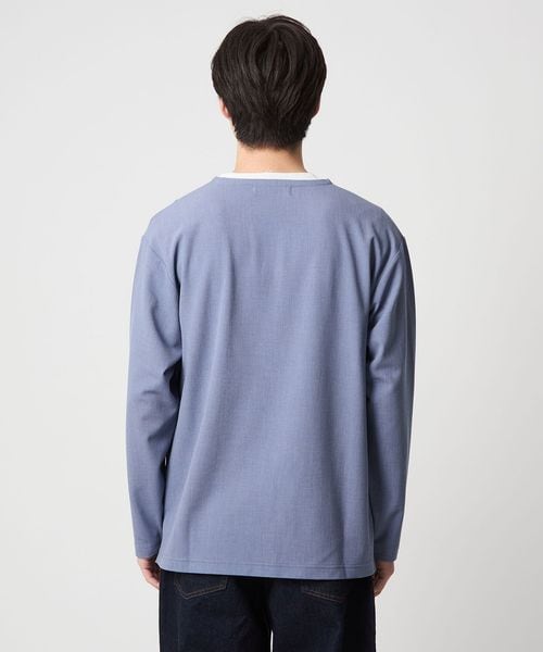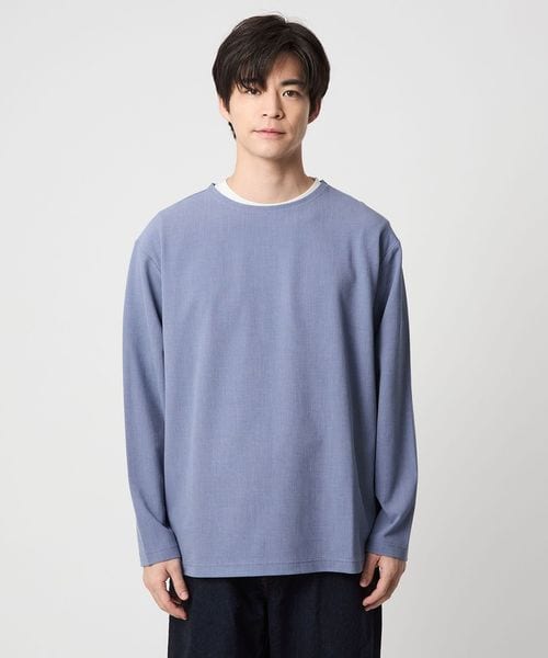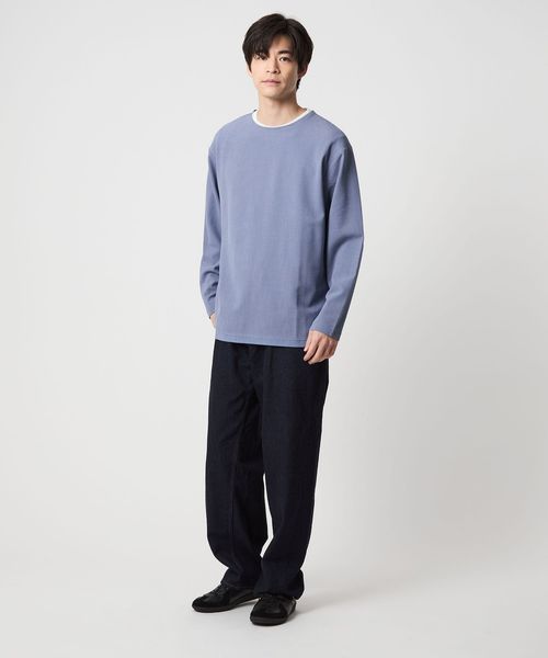 ノーカラーネックですっきりとした首周りの長袖Tシャツです。