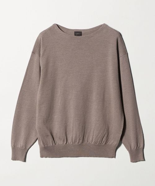 襟のないボートネックデザインがポイントのニットです。