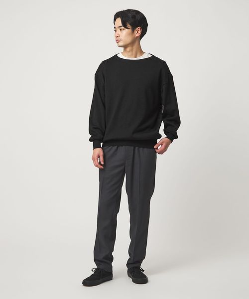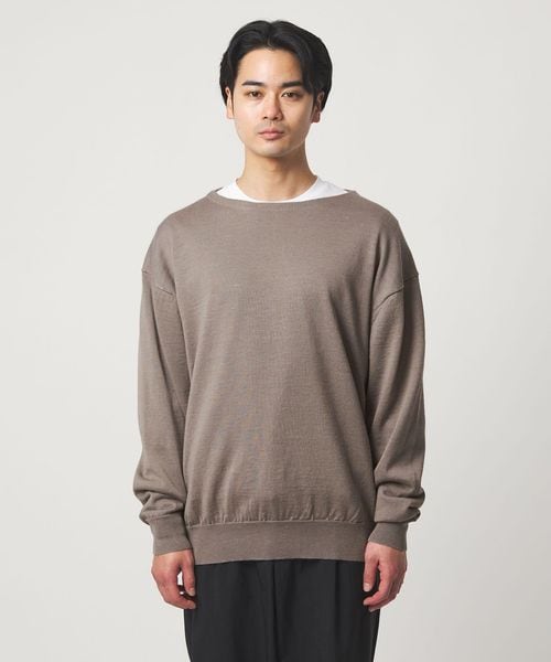 襟のないボートネックデザインがポイントのニットです。