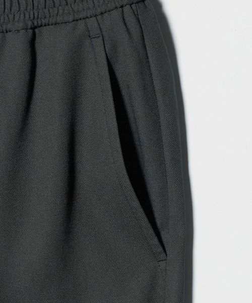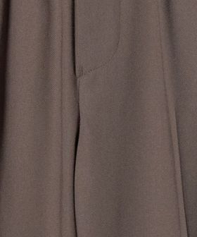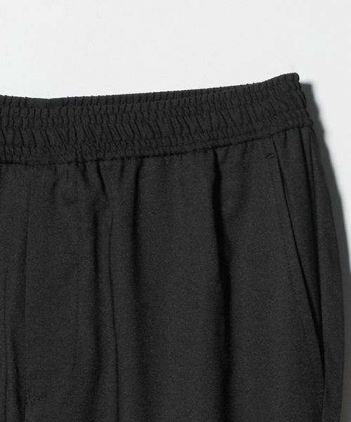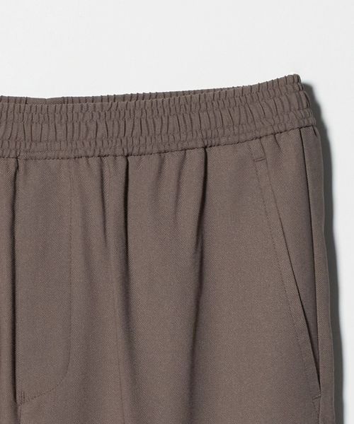 リラックスしたウエストイージー仕様ながら、クリース入りデザインや前開きファスナーが絶妙なバランスです。