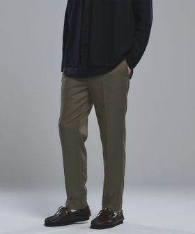 リラックスしたウエストイージー仕様ながら、クリース入りデザインや前開きファスナーが絶妙なバランスです。