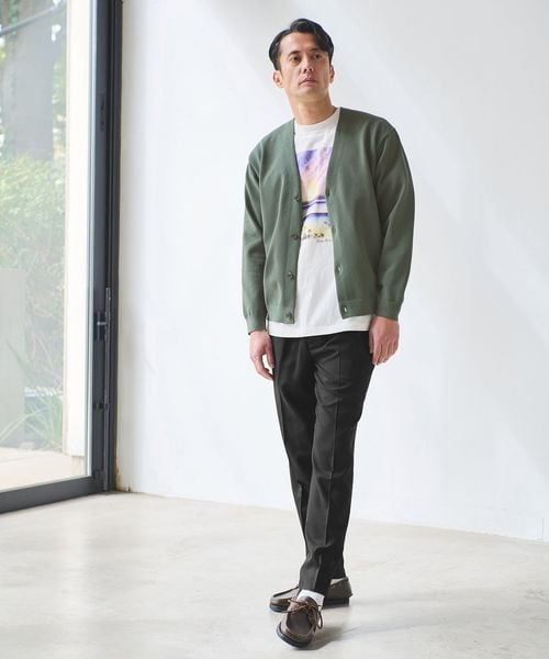 シャツやニット、カーディガンなど、キレイメなトップスで合わせると、抜け感のある街着スタイルが完成します。