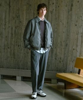 テーパードパンツやセンタープレス入りのボトムスと合わせた、クリーンな着こなしも素敵。
