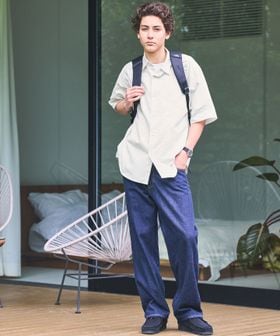 FINE BASICSシリーズのワイドシルエットのボトムスと合わせた、リラックス感のあるスタイルがおすすめ。(対象品番:32141000087)